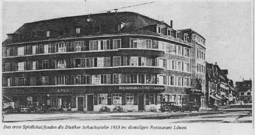Das erste Spiellokal fanden die Dietiker Schachspieler 1933 im damaligen Restaurant Löwen. Später wurde dieses Gebäude allgemein Bata-Haus genannt, heute ist hier Hickenbick Haute-Coiffure beheimatet.