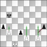 Die komplizierteste Form des Bauernschlagens ist das Schlagen "En passant", in der der Bauer dann geschlagen werden kann, wenn er aus der Grundlinie zwei Felder nach vorne geht und dabei ein Feld überschreitet, das von einem gegnerischen Bauern bedroht wird. Das Schlagen muss aber unmittelbar im nächsten Zug erfolgen. Zieht im Diagramm der weisse Bauer von b3 auf b4, so berechtigt das den Schwarzen nicht, die en passant Regel anzuwenden. Zieht der weisse Bauer von e2 nach e4 oder e3, so berechtigt auch das den Schwarzen nicht, die en passant Regel anzuwenden. Zieht aber der weisse Bauer von g2 nach g4, so darf der Schwarze den weissen Bauern mit seinem schwarzen Bauern auf h4 schlagen, als hätte dieser sich auf das Feld g3 bewegt.